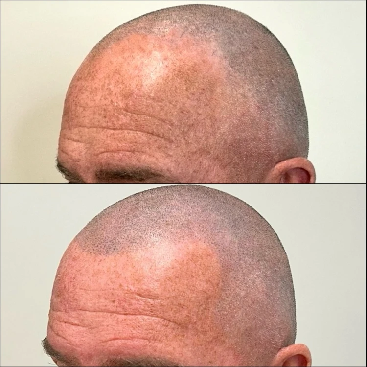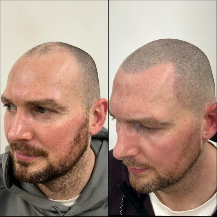 A: You’ll see the improvement straight away, then it settles as it heals. In the early stage it can look slightly darker and fresher, then it softens into a more natural, even finish. Once fully settled, it should look like it belongs — not “just done”, but simply your hairline.